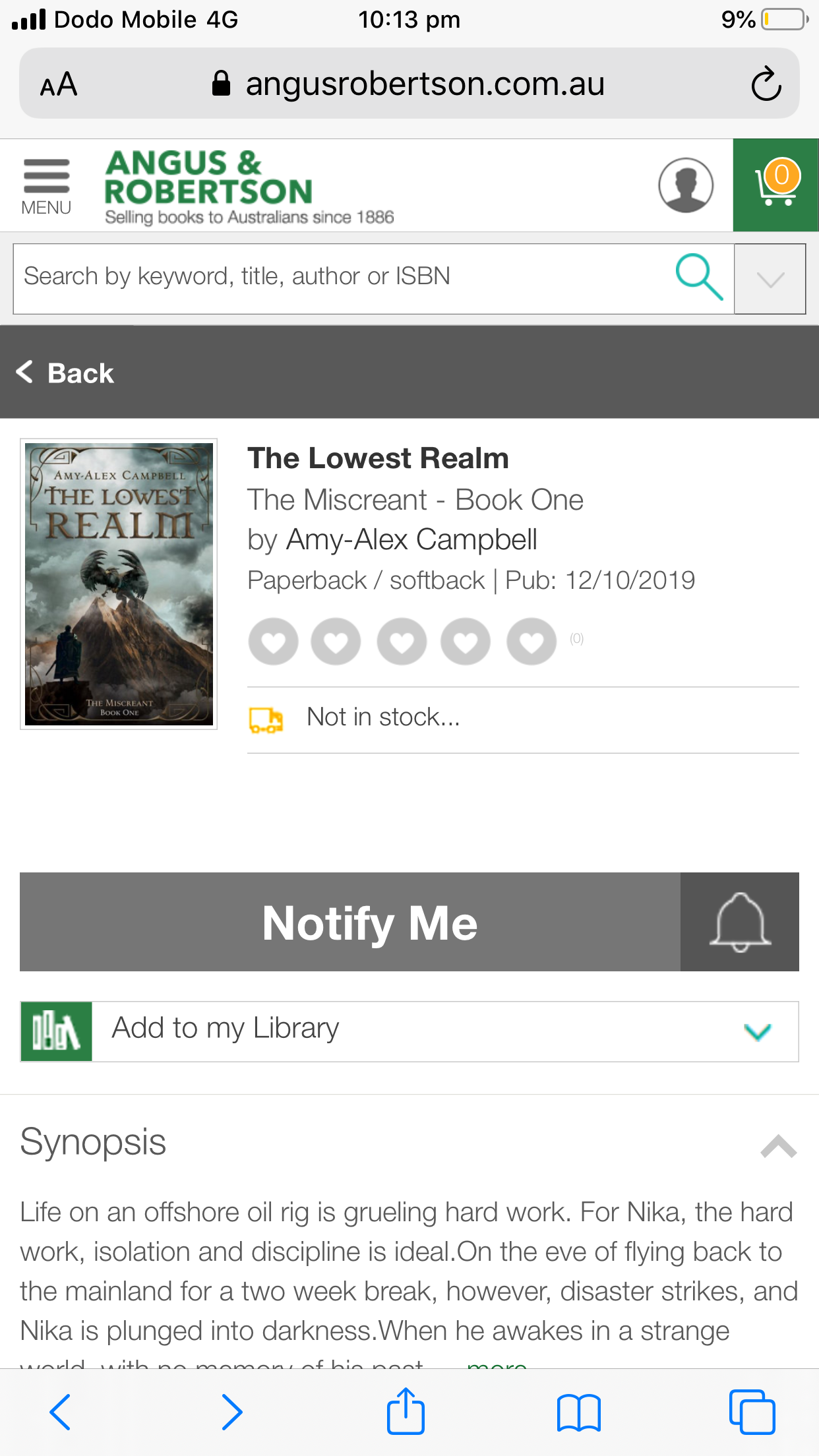 Angus & Robertson may also be distributing my book, much to my surprise. I googled ‘Amy-Alex Campbell reviews’ and saw the listing for A&R. I was like…WTF are they doing with my book?? Then I found out that they are one of IngramSpark’s distribution partners.