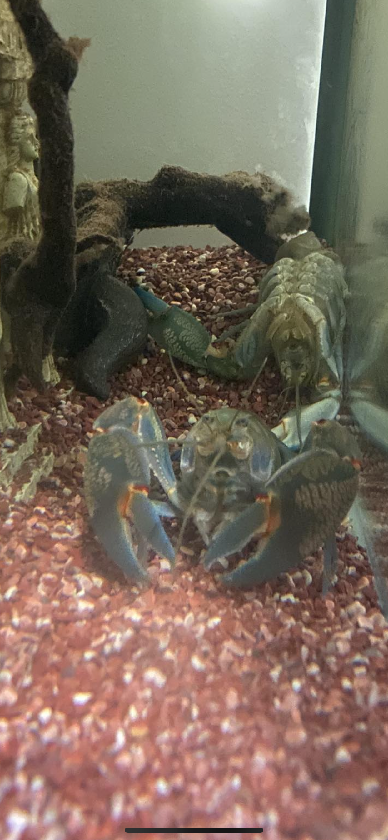 Yabbie Dabbie Doo started behaving a little off the past few days, and had stopped eating. I noticed that his tail had separated from his torso, which means that he’s due to shed. Sure enough, I got home yesterday to find that he has shed his exoskeleton! He is extra aggressive and back to his territorial self.